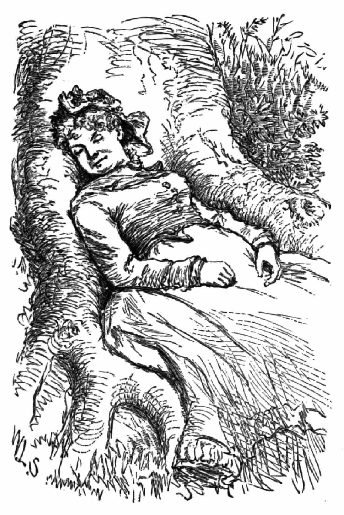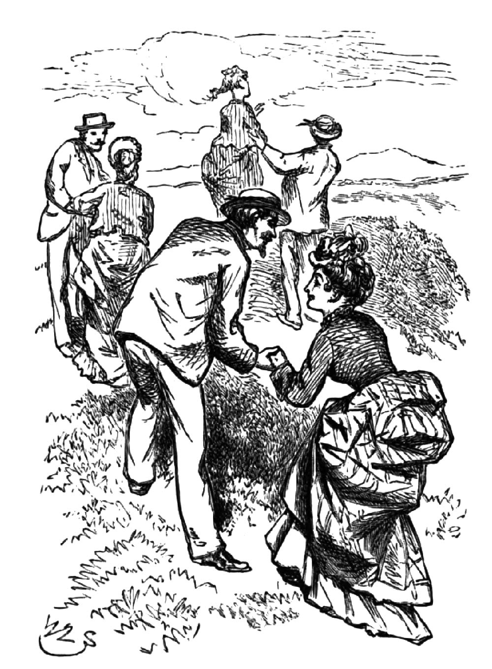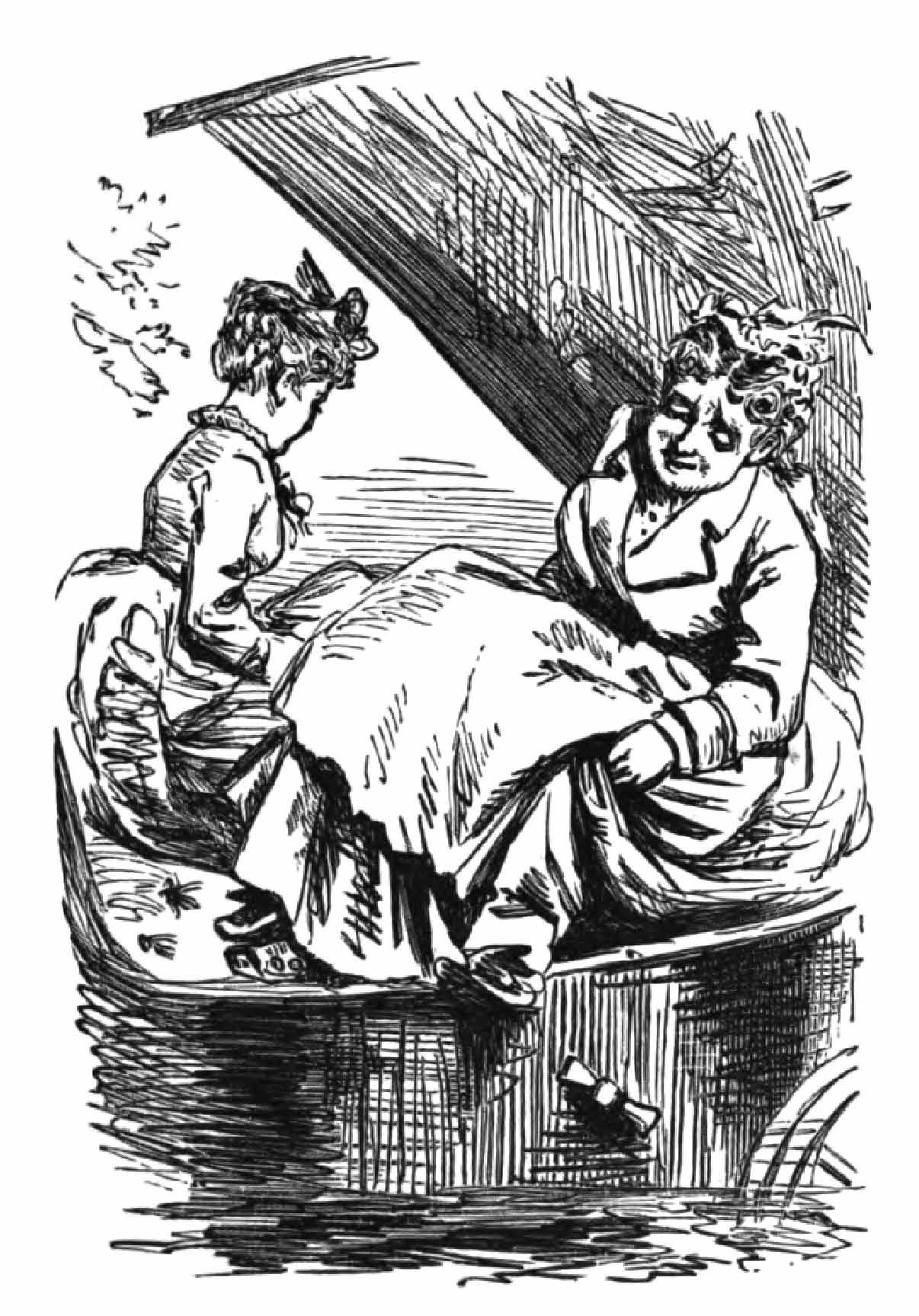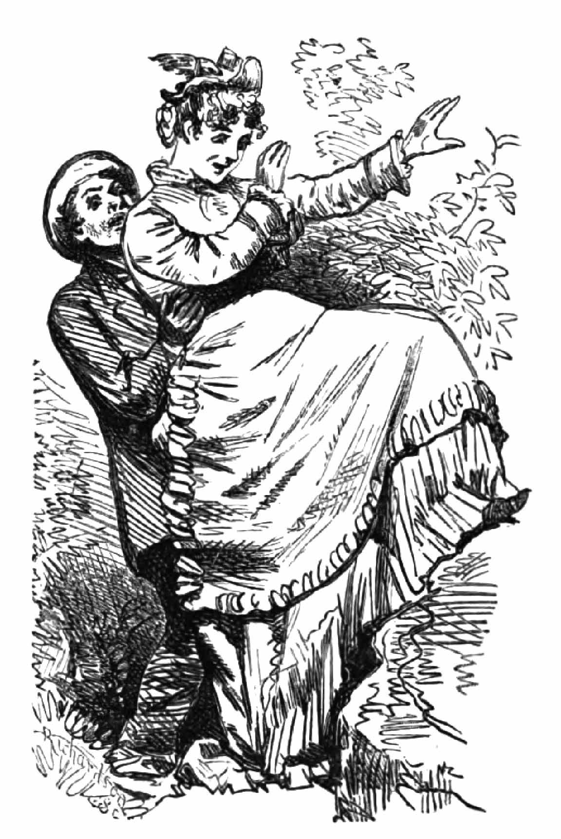 “Oh, he must not do that!” cries Sylvia, alarmed. “The hat is not worth any risk— in fact, I don’t care about it at all. Of course, it is utterly ruined. Charley!” (elevating her voice), “O Charley! please come away! Let the hat alone!”