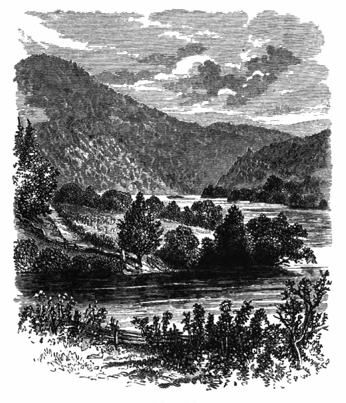“It is this way until it leaves the mountains,” says Eric. “It rises in this gap, and not far above here Hickory-Nut Creek flows into it. Now we enter the grandest pass in the whole line of the Blue Ridge, and if you can restrain your anxiety for luncheon a little longer, mother, we can halt at a delightful wayside spring in the midst of the finest scenery.”