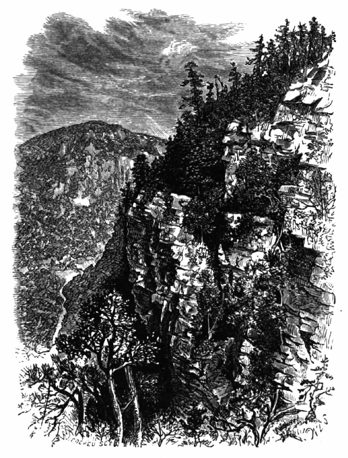 So we go on, crossing the river, and keeping it on our right as we turn down Hickory-Nut Gap. We are not more than three miles from the foot of the mountains, but along this three miles, as Eric has said, is some of the finest scenery of the magnificent pass. Much as we have heard of it, we are almost awestruck by its grandeur.