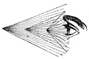 [55] The range of the eye, or diameter of the field of vision, is 110°; consequently, this is the largest angle under which an object can be seen. The largest angle, however, is here made 120°, for the simplification of the numbers. The range of vision is from 110° to 1′.