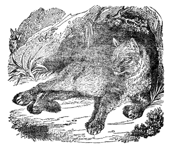 The female Puma, in the Society’s Gardens, brought forth two young ones on the 2d of April. The ground-colour of these is of a paler fawn than that of either of the parents, and they are deeply spotted. The eyelids of one of them were partially unclosed on April 9. The mother, whose temper was always mild, has since become remarkably gentle, purring when the keeper goes into her den, and allowing her young ones to be handled and carried about without appearing 132to be annoyed by such treatment. The young, on the contrary, were, when first born, extremely fierce, hissing and scratching with all their might; they have, however, since become better tempered, though they are still spiteful. The manners of both the mother and the young are similar to those of the domestic cat and her kittens, the former carrying the latter about from place to place in her mouth. For a day or two previously to her littering she pulled the straw in her inner den into pieces and thus formed a nest.