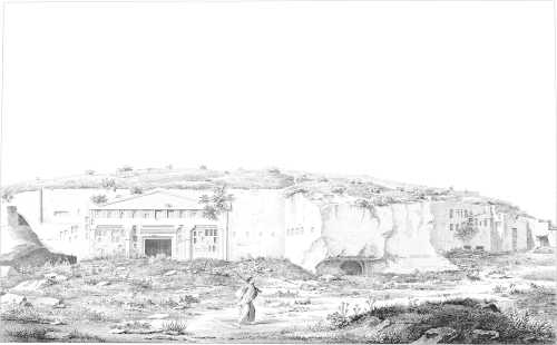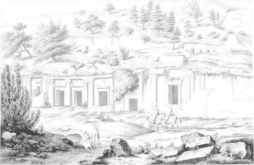 | XL. | SIXIÈME VUE DES GROTTES DE LA NÉCROPOLIS DE CYRÈNE. |