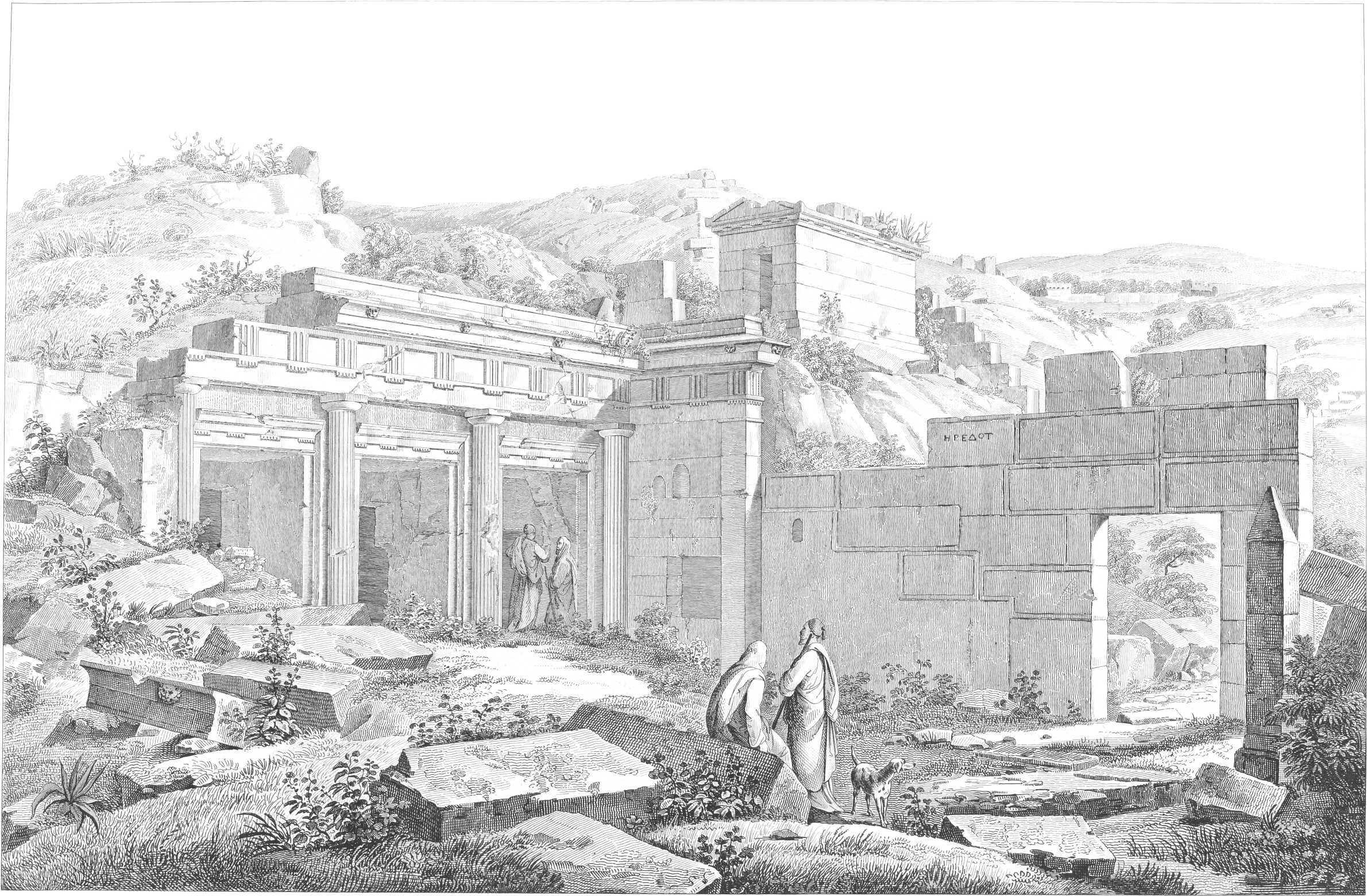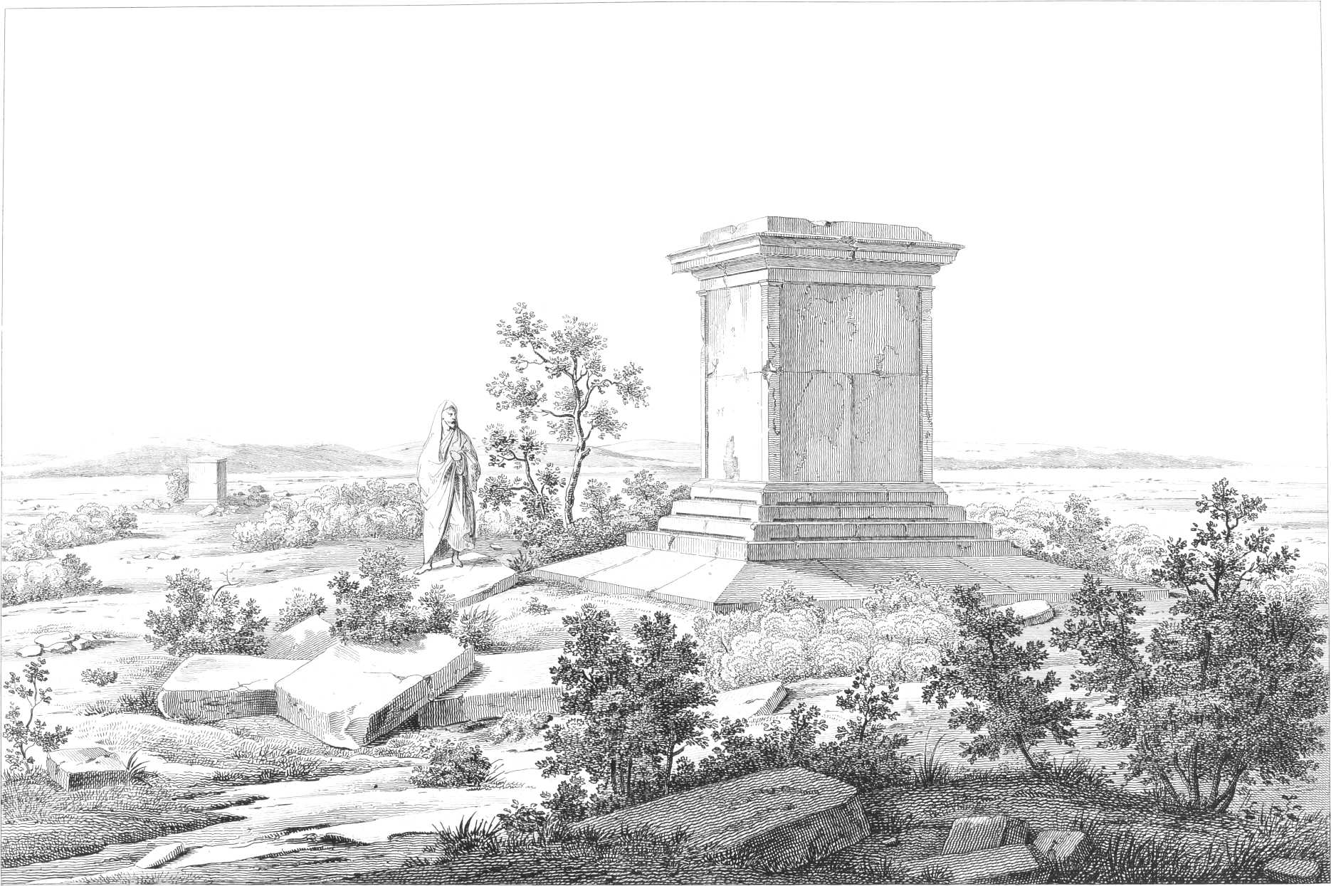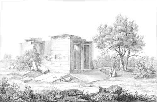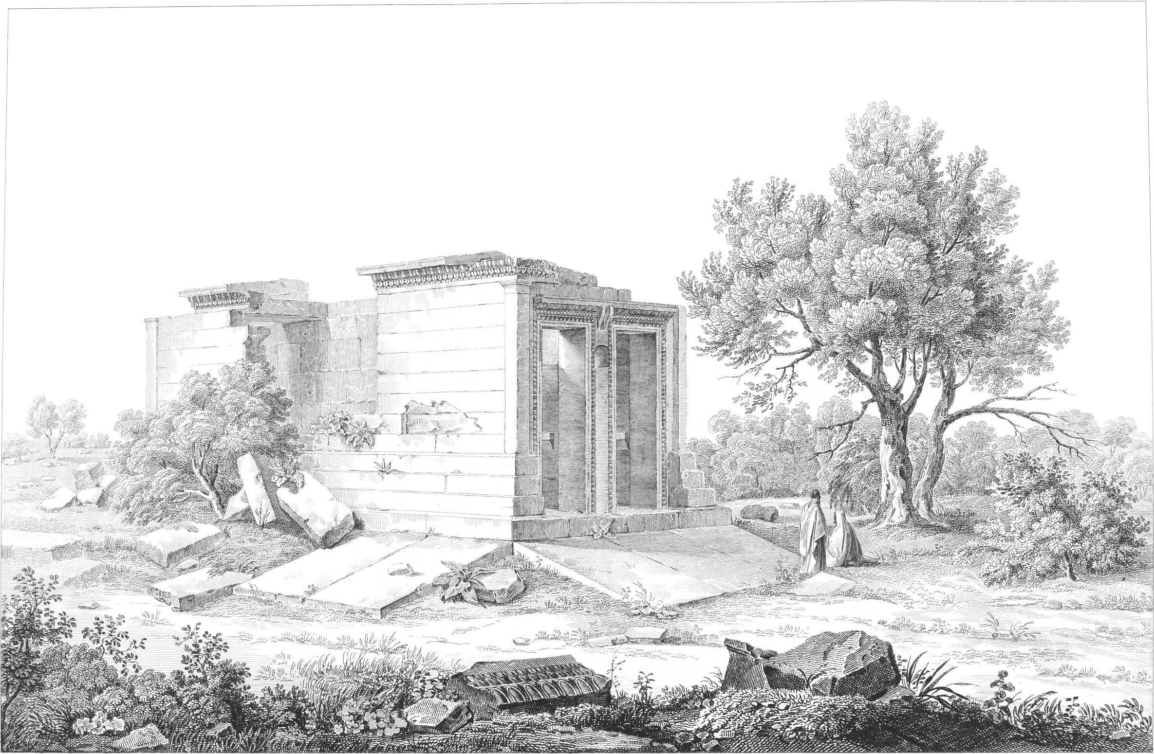 | XVIII. | VUE D’UN PETIT MAUSOLÉE, SITUÉ DANS LES ENVIRONS DU GOLFE NAUSTATHMUS. |