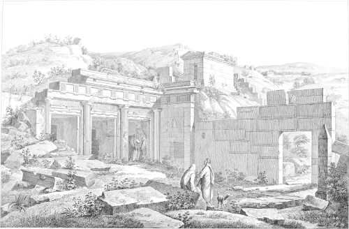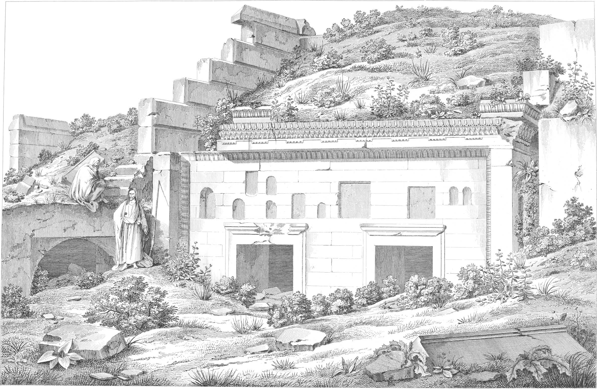 | XVI. | VUE D’UN GRAND MONUMENT FUNÉRAIRE, SITUÉ DANS LES ENVIRONS DU GOLFE NAUSTATHMUS. |
