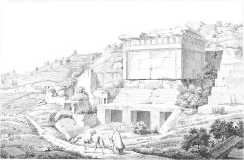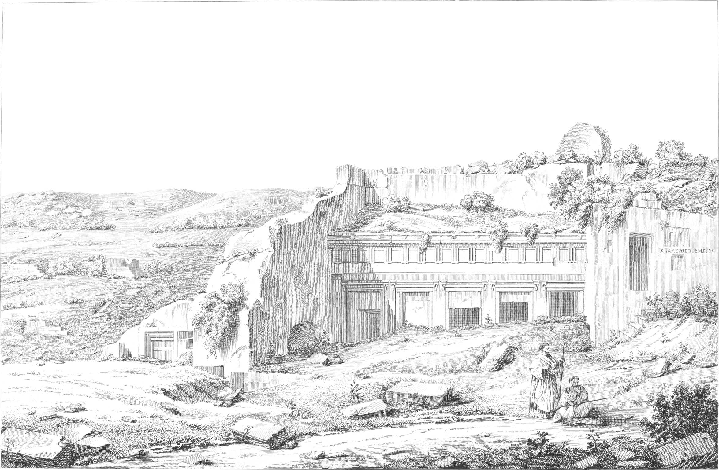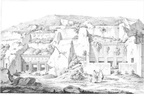 | XLV. | VUE D’UN TOMBEAU SITUÉ À L’EXTRÉMITÉ ORIENTALE DE LA NÉCROPOLIS DE CYRÈNE. |