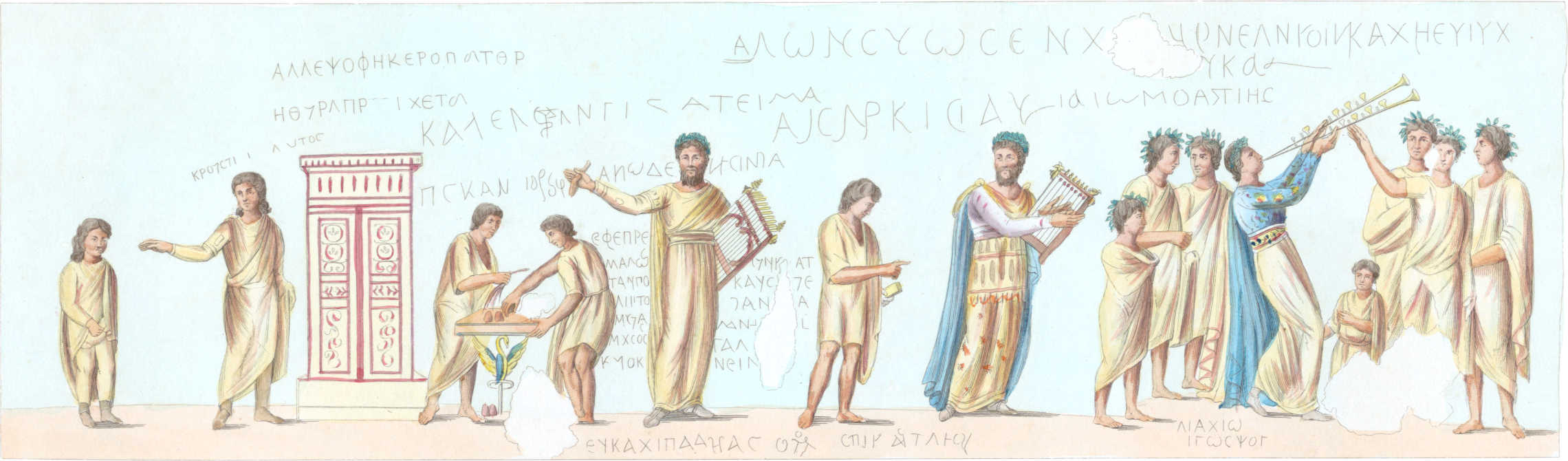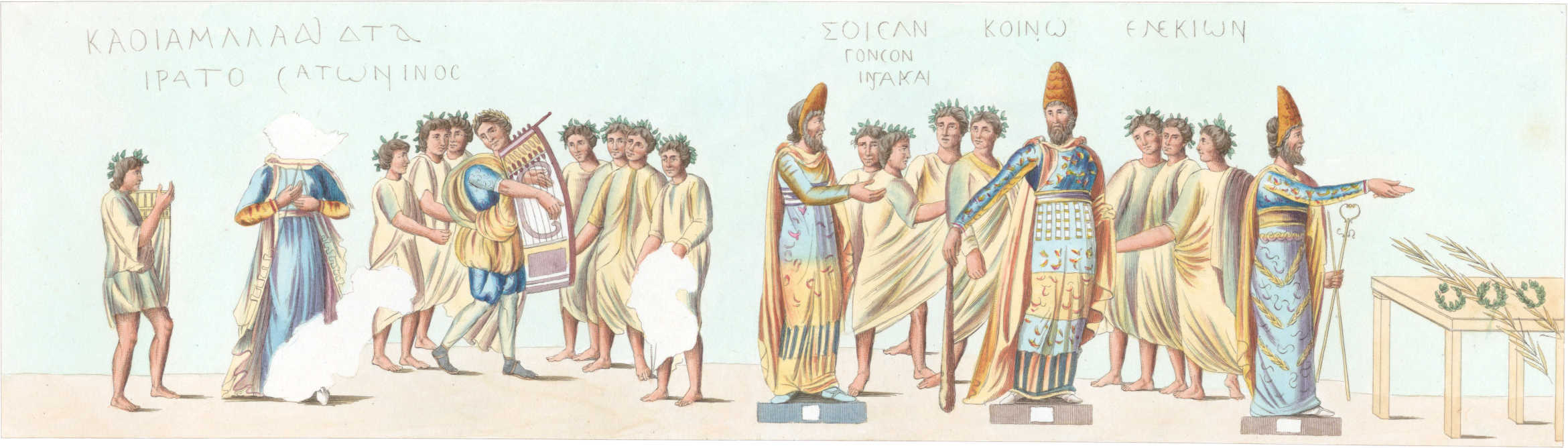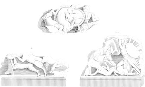 | LIV. | PEINTURE TROUVÉE SUR LA FRISE D’UN TOMBEAU, À CYRÈNE. |