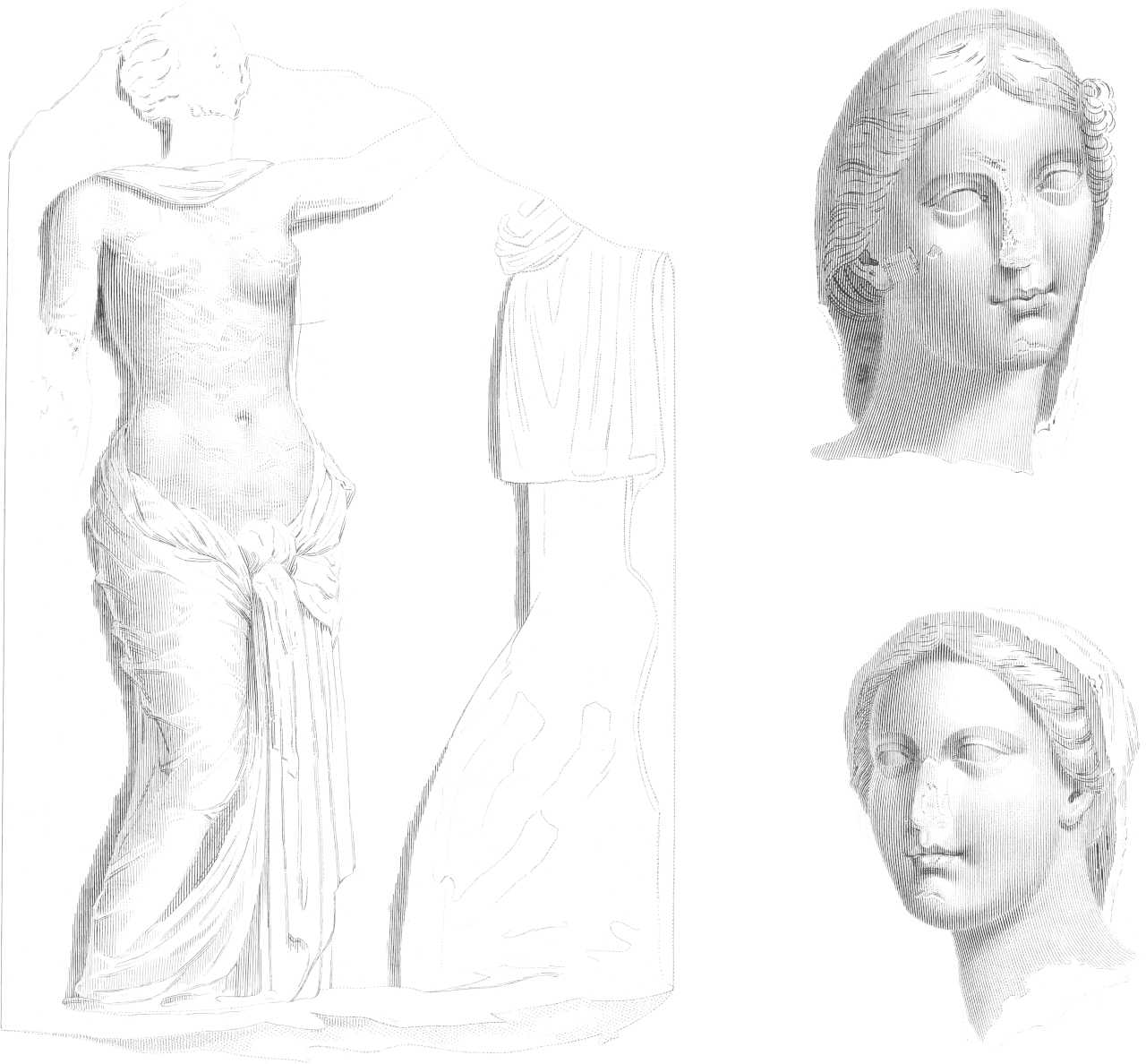 | LX. | BAS-RELIEF ET TÊTES EN MARBRE, PARMI LES RUINES DE CYRÈNE. |