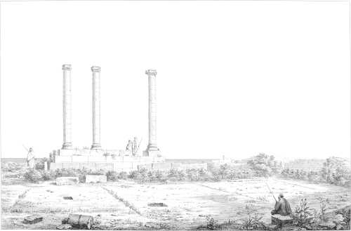 | LXVIII. | VUE DES RUINES D’UN TEMPLE, À PTOLÉMAÏS. |