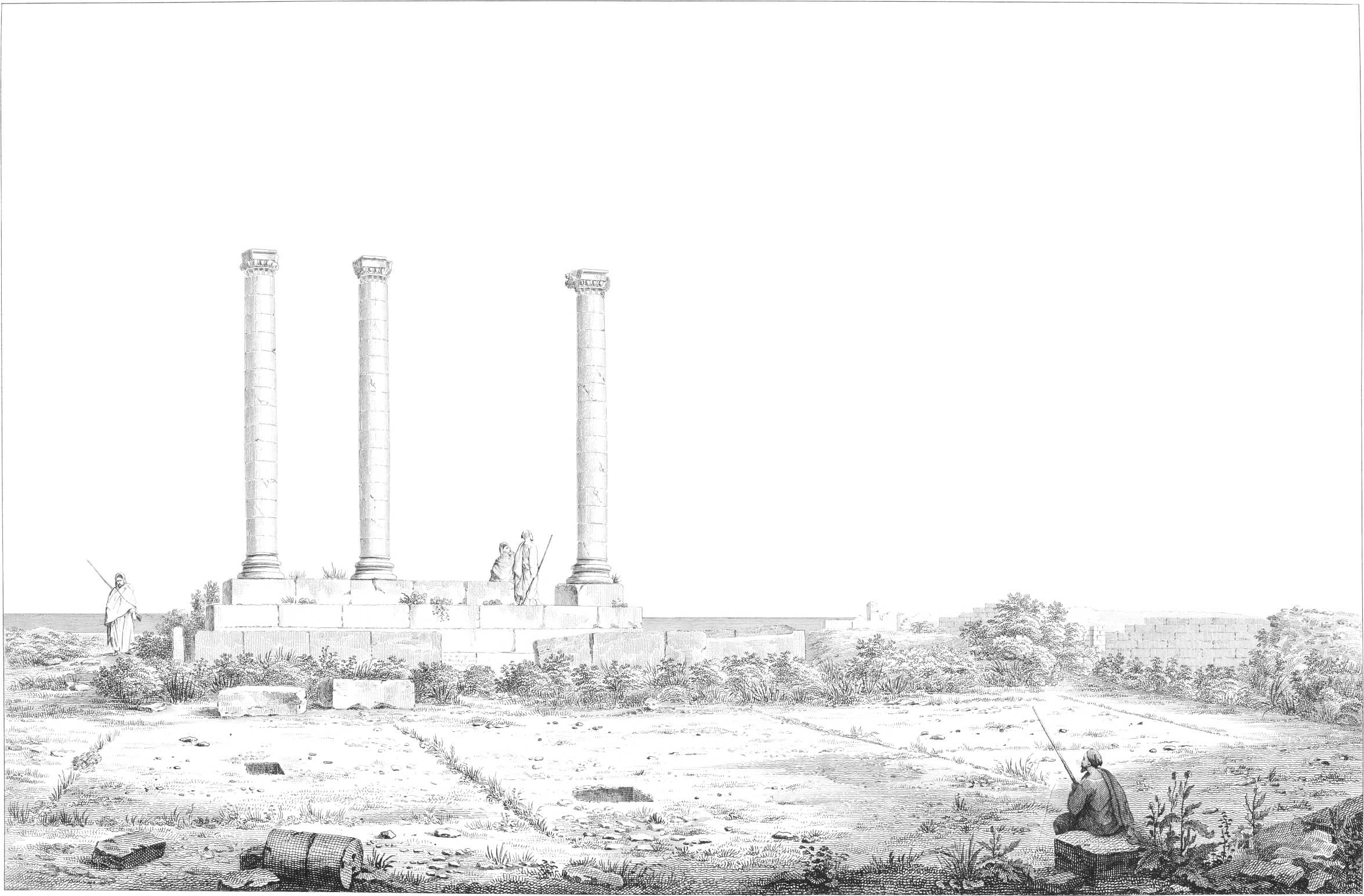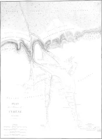 Guidé par les souvenirs de l’antiquité, j’espérais offrir au monde savant une abondante moisson de documents précieux ; j’espérais que le résultat de mes recherches parviendrait non seulement à intéresser les arts, mais à éclaircir quelques pages obscures de l’histoire. Le temps, le climat, et surtout la barbarie, ont en partie déçu mon attente : mais si je n’ai pu retracer les belles époques de Cyrène autonome, j’ai du moins essayé d’offrir l’image fidèle de ce qu’elle est de nos jours. J’ai eu[vii] l’avantage, n’importe par quelles chances, de séjourner long-temps dans la Pentapole, et j’ai pu mesurer, dessiner et décrire tout ce qui m’a paru digne d’intérêt.