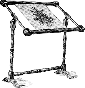 From the earliest times, it has been the amusement of women of leisure, and the occupation of those whose skilful fingers must be used to bring in returns of daily bread. In the Middle Ages, a regular work-room, or “studio,” was set apart for this especial purpose in the dim old castle; and there the whole paraphernalia of embroidery-frames, materials, and implements, were always to be found. There, too, the chatelaine sat with her maidens embroidering cushions, or book-covers, or those wonderful pieces of historical tapestry afterward displaced by the more mechanical arras.