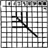The needle is put in at the back of the material and brought out at 1, put in again at 2 and brought out at 3, put in again at 4 and brought out at 5, and so on to the end of the line. In outline-work the thread should be kept to the left of the needle, and great care taken to bring the needle up exactly in the line of the pattern, or a wavy, uncertain outline will be the result, and the character of the pattern will be lost.
