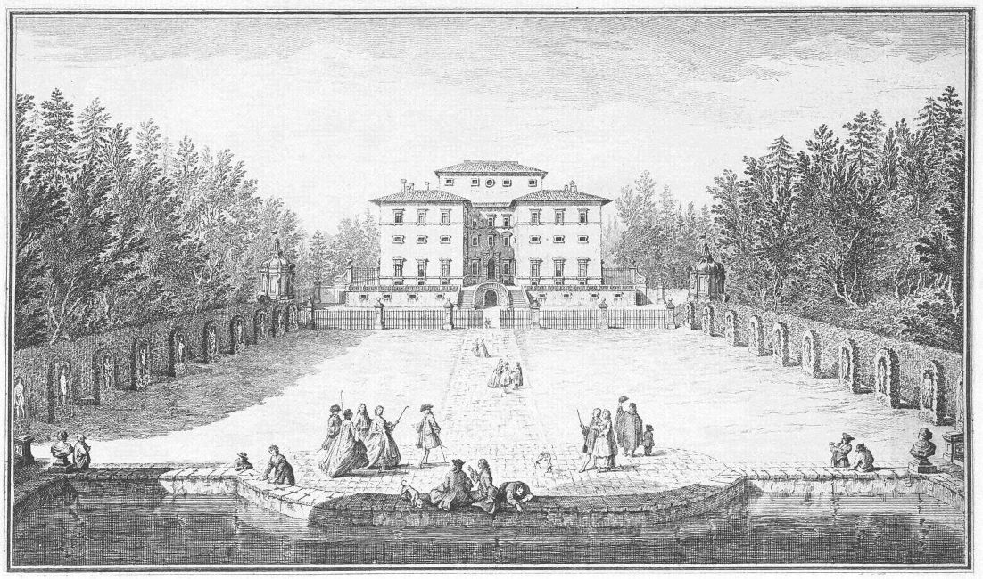 Visitors to Florence are more or less intimately acquainted with the history of her churches, galleries and palaces, but there are few books dealing with the villas which crown the hills surrounding the lovely city. For years friends have asked me to write some account of them and the first beginning was made in an article in the National Review (May 1894) called “A stroll in Boccaccio’s country,” dealing chiefly with the two villas described by him in the Decameron in language of matchless grace and charm. Becoming interested in the subject I collected what information I could about the Florentine Villas and the families to whom they had belonged, and coming across Guiseppe Zocchi’s rare work Vedute delle Ville e d’altri luoghi della Toscana published in 1744, it was thought that reproductions of his beautiful etchings would enhance the interest of my book. Zocchi, about whom but little is known, was born near Florence in 1711 and died in 1767. Frescoes were executed by him in the Serristori and Rinuccini palaces and he was commissioned by the people of Siena to decorate their city with painted tapestries and hangings for a visit of Leopoldo, Grand Duke of Tuscany. This he probably owed to his patron the Marquis Gerini to whom the volume of engravings of the Villas was dedicated.