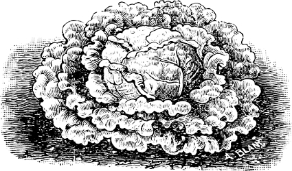 [5] For years, Mr. Vandergaw, a large cabbage grower of Long Island, has had a second-early cabbage fully as early as Early Summer and with much larger heads. This is known as the Vandergaw Cabbage, and is only now being generally introduced. The heads are very large and solid, of the shape shown in the illustration on page 64; it is a good keeper, and altogether a good variety, also, for winter use.—Ed.