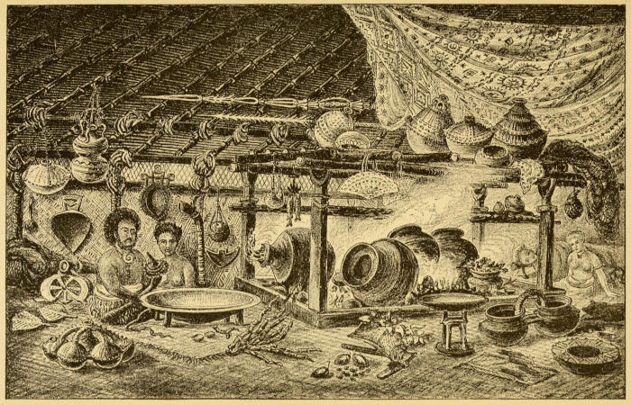 The Cannibal Fork represented on the binding of this book is a facsimile of a fair average specimen. Some of the chiefs had forks eighteen inches long, of dark polished wood, with handles richly carved.