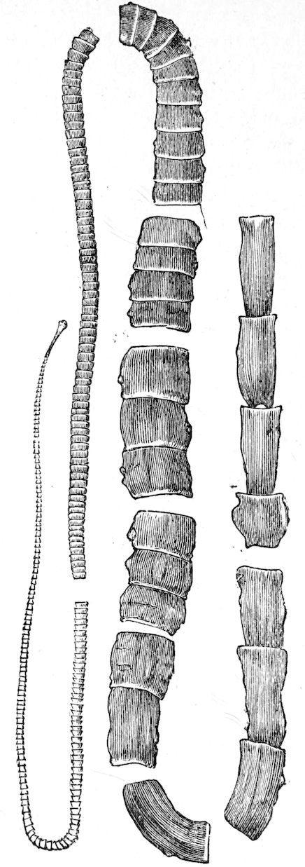 Fig. 135.—Tænia saginata: head, and a number of joints, represented natural size.