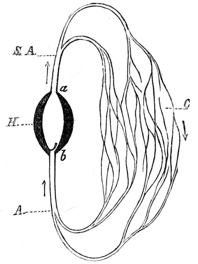 Flattened parasitic worms, tongue-shaped or leaf-shaped, living on or in a host, and provided with one or two ventral suckers. The intestine forks into two branches immediately behind the gullet, and these two divisions in some species (e.g. the large liver-fluke) branch again repeatedly in a tree-like fashion. Anus and blood-vessels absent. Almost all flukes are hermaphrodite; they fertilize themselves. All the forms living within a host (i.e. endoparasitic forms) lay an immense number of small eggs, from which larvæ are hatched that become asexually reproducing animals. These or their progeny produce once more the sexual form. The development is therefore an example of metagenesis (p. 16), but there is a change of host. Only the two liver-flukes need be dealt with here.