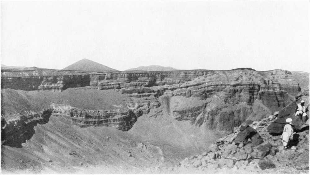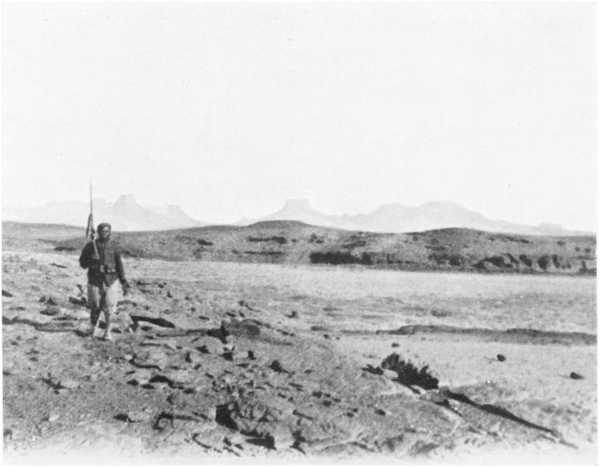 In the evening of the second day’s march, when we were drawing near the foothills of Ennedi, we had not yet found any well, and our tiny store of water was used up. But spying in the west a notable gap in the line of hills, I thought we should be likely to find a water-point there, and profited by the coolness of the night to try to reach it. At dawn we came out on a fine river, dried up, where we got a little water by digging holes in the sand. By good luck our guide, Sougou, recognized that we had reached Oued Mourdi, where he had come by another route some six months earlier; thanks to which discovery, after a little search we were able to bivouac beside the well of Diona.