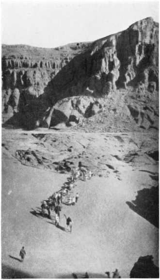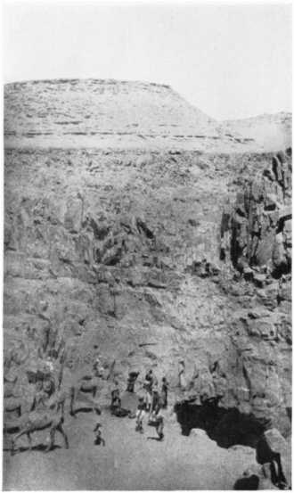 The site of the well was chosen by the revered Sidi el Mahdi about 1898, and the works began almost at once. The boring, all done with picks and crowbars, was effected in hard reddish sandstone, by gangs of six workmen, relieved every month, and supplied with food and water by an endless succession of camel-convoys. At the end of eighteen or twenty months of uninterrupted work the water was at length found, clear, fresh, and abundant, at a depth of 80 yards, and since then the crossing of the Libyan desert has become relatively easy, the longest stretch without water being reduced to about 180 miles, whereas it was formerly almost 300. From the well of Sarra to Koufra the distance to be covered is only about 160 miles and offers no further difficulties, thanks to the intermediate well of Bechra.
