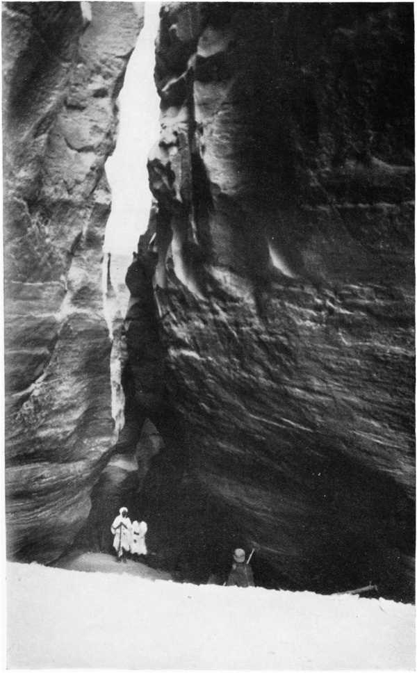 Continuing our route eastwards along the foot of the cliffs, we reached five days later the region of Erdi-Ma, decidedly higher than that of Erdi-Dji: the highest altitude I had the opportunity of measuring exceeded 3000 feet. Our bivouac was installed at the entrance of the gorges of Dourdouro, where very picturesque natural cisterns are to be found containing abundant quantities of water withdrawn by the positions of the enclosing rocks from the drying action of sun and wind. During the whole of the way thither we did not see a living soul, any more than in the neighbourhood of Dourdouro.