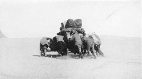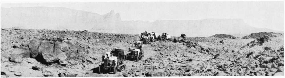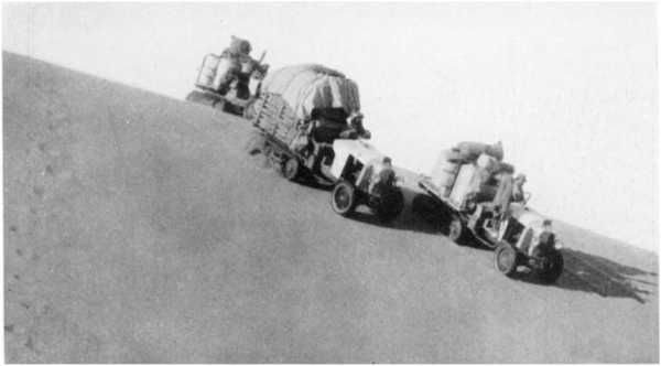 2. Caterpillar cars carrying heavy loads over a sand-dune between Bir Terfawi and Gebel Owenat