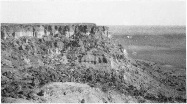 3. The western wall of the Qattara depression 35 km. S.S.W. of Qara Oasis. Top of cliff about 3 m. and floor of depression 133 m. below sea-level