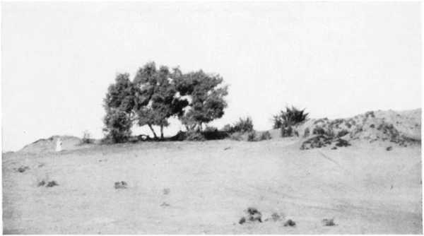 [47]It may be remarked that in the desert of Northern Sinai the dune-lines follow curved directions, instead of maintaining a single direction as in the Egyptian Libyan Desert, and this curvature of the Sinai dune-lines has generally been thought to be caused by the deflecting influence of the mountain masses of Moghara, Yelleg, and Hellal on the wind; but here also there may be regional influences at work.