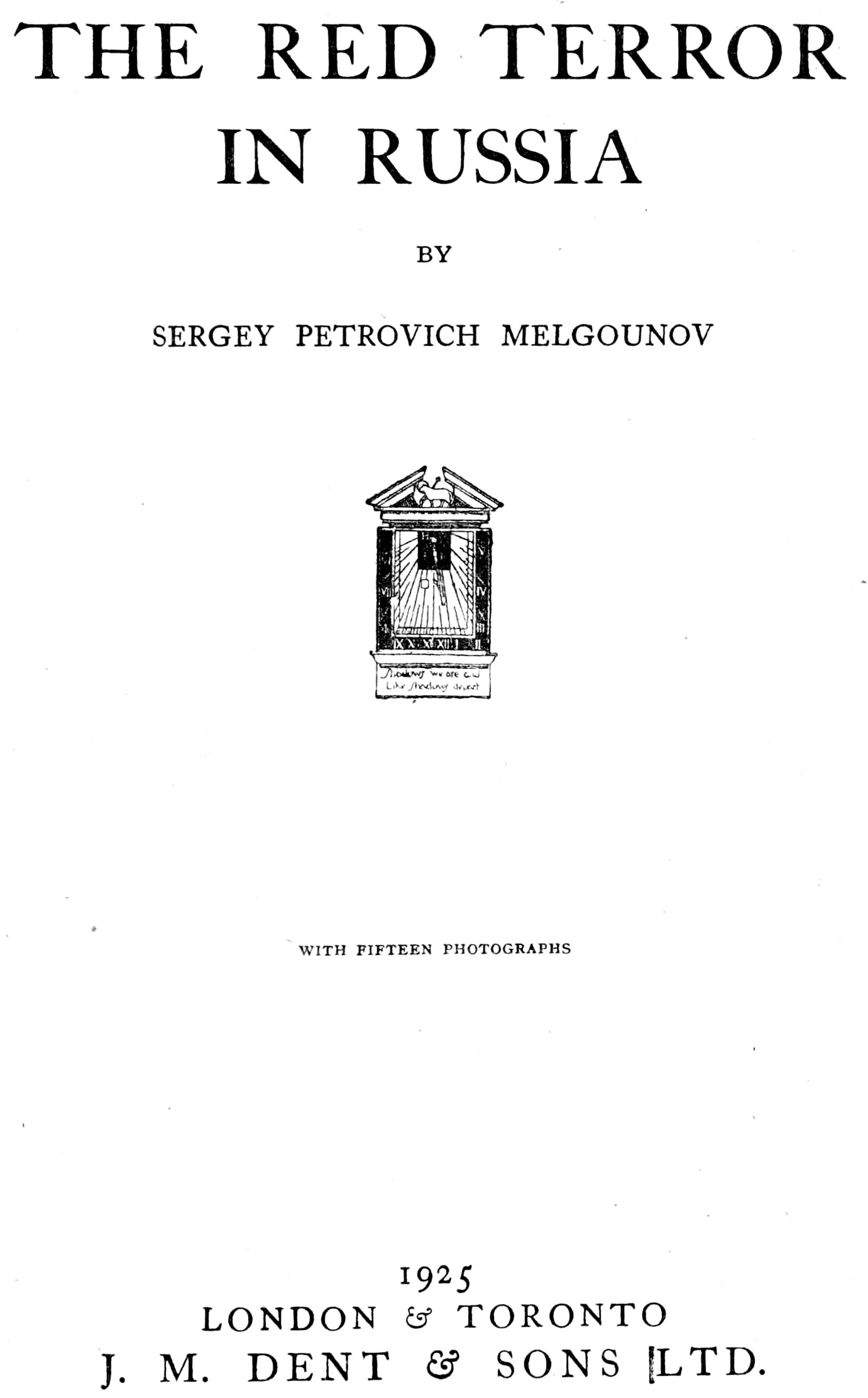 The original edition of The Red Terror in Russia from which this book has been translated was published by Messrs. Vataga of Berlin in 1924.