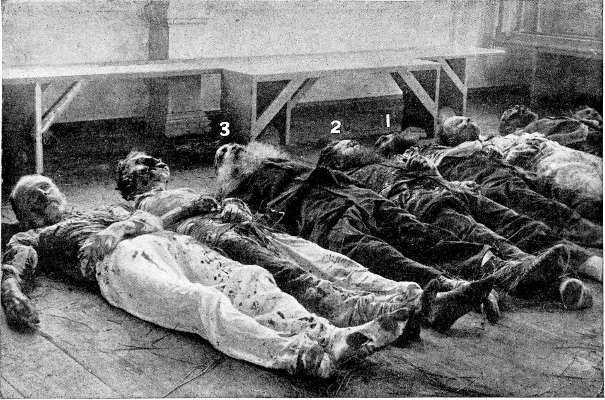 A few of a party of nineteen ecclesiastics shot at Yuriev on January 1, 1918—amongst them Bishop Platon (1)—before their removal to the anatomical theatre at Yuriev University.