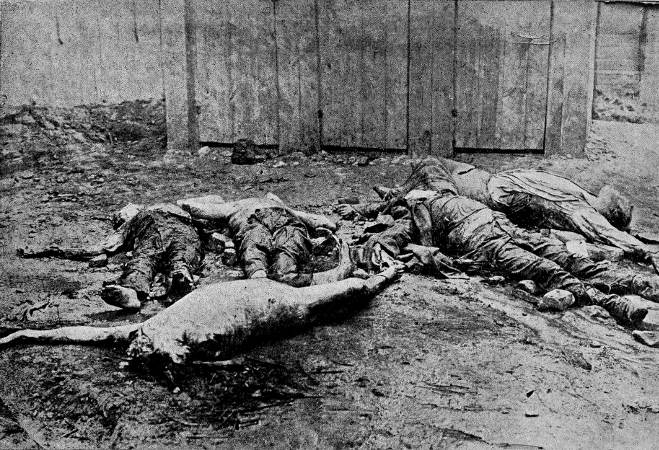 | A Corner of a Coach-house on the Premises of one of the Kievan Che-Kas where Prisoners were Shot. The Floor is littered with Chips of Skull Bone, Clots of Brain, etc. | 178 |