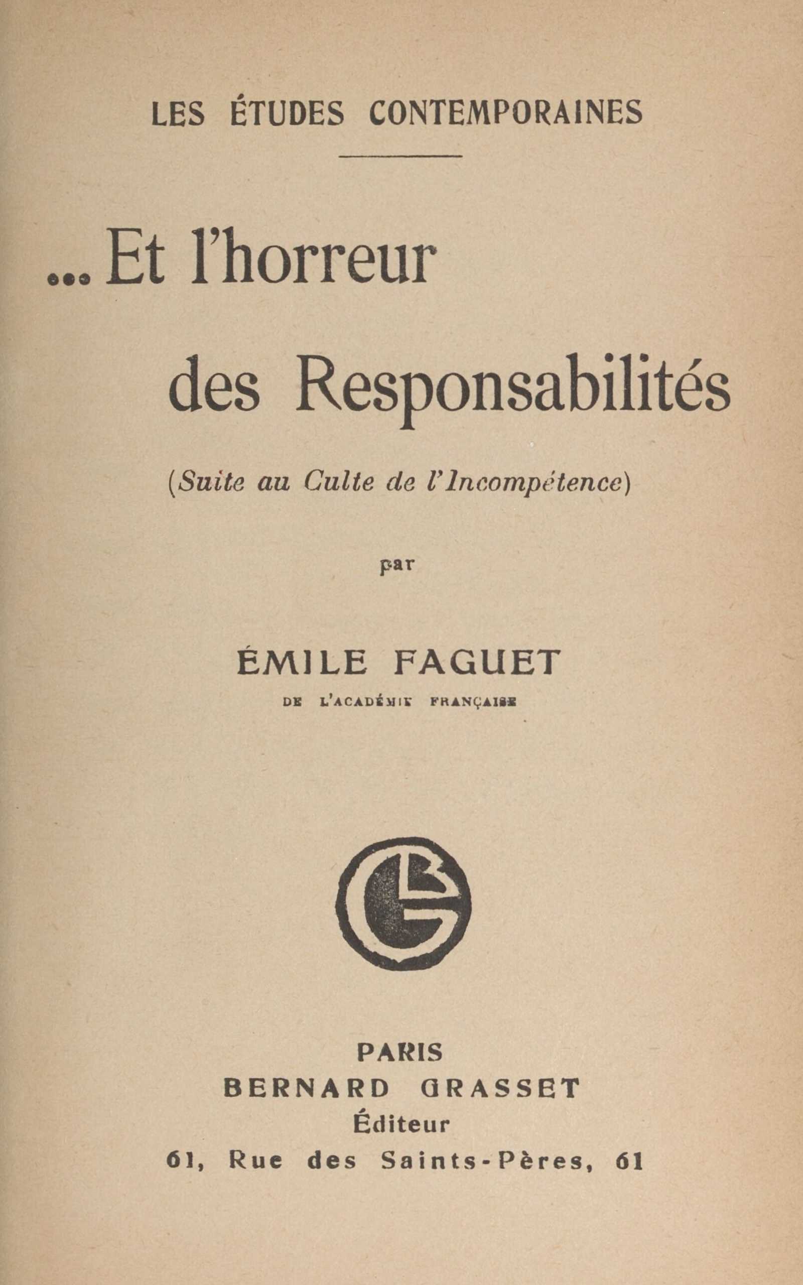 Que veulent-ils être ? Irresponsables. C’est l’histoire même des Français depuis un siècle et ce sera leur histoire indéfiniment, à moins que ce livre ne les corrige, sur quoi je compte, mais peu. Ils veulent être irresponsables. Ils conduisent leurs idées juridiques selon ce dessein ; ils organisent leurs professions et ils les pratiquent dans cette vue ; ils ont une vie de famille gouvernée par cette pensée ; ils ont une vie sociale dirigée par ce principe.