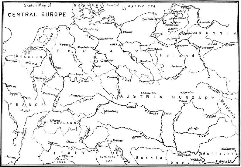 Into the details of that great conflict it is not our business here to inquire. The splendid tactical coup d’œil of Gustavus has never been called into question. Let us rather consider how he profited by this amazing triumph. While the adversary withdrew into Thuringia, Gustavus struck right across his communications with Bavaria, pressing along the “Priest’s Lane,” the rich string of ecclesiastical principalities which then lined the banks of the Main—that march which is mentioned with admiration by the present biographer of Turenne. He thus provided himself with a new and fertile base for operating against the heart of the Empire at the expense of the Catholic party, while the Saxons invested Leipzig and defended the line of the Elbe from the enemy in Silesia. The Swedish King jealously guarded his communications with the sea, which were demarked by the rivers Saale and Elbe. Thuringia was garrisoned by Weimar troops; Halle by those of the Prince of Anhalt; Banér invested Magdeburg, while Tott held Mecklenburg in subjection.