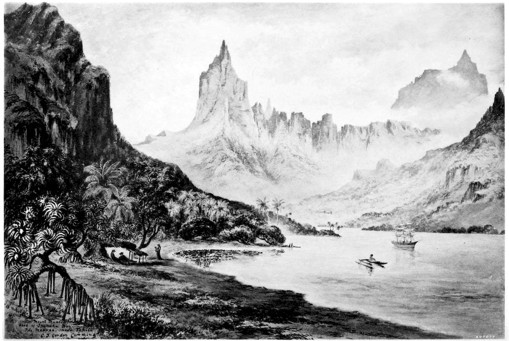 The annexation of Tahiti was formally proclaimed in Papeete on 24th March 1881, and was made the occasion of a brilliant festival, such as the light-hearted crowds are ever ready to welcome. Great were the official rejoicings. From every ship in the harbour, and every corner of the town, floated the tricolour, which likewise adorned the raven tresses of the women and the button-holes of the men. Great was the noise of big guns, and the amount of powder expended on salutes. An imposing column of all branches of the service—sailors and marines, marine artillery, with their guns, infantry, and gendarmes—marched round the town, headed by the band: “A Tahiti, comme en France, on aime à voir passer nos soldats,” says the ‘Messager de Tahiti.’ So the lovely town was en fête. Every himène chorus had arrived from every corner of the isles, making the whole air musical. Thousands of natives, all in their brightest, freshest dresses, kept up incessant movement in the clear sunlight or cool shade. Everywhere games and feasting were the order of the day. In the governor’s beautiful gardens, a brilliant banquet for upwards of a hundred persons was served in a great tent, all as graceful as the combined taste of France and Tahiti could make it. Then followed a lovely garden festival, just such as that described by “The Earl and the Doctor,” a gay ball for the leading inhabitants, while “the people” danced no less joyously on the green, outside the sacred precincts. Games, music, dancing, and feasting, with a night of brilliant illuminations and fireworks,—all these, combined with lovely surroundings and perfect weather, made the great official festival of Tahiti a day which the French naval officers very naturally consider one to be remembered for ever, but which, perchance, may have caused some of the older inhabitants an angry and bitter pang, for the independence of their country thus lost for ever.