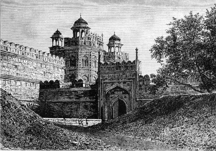 [3] “The following account of Akbar’s Pachisi-board is from an old Agra periodical:—The game is usually played by four persons, each of whom is supplied with four wooden or ivory cones, which are called ‘gots,’ and are of different colours for distinction. Victory consists in getting these four pieces safely through all the squares of each rectangle into the vacant place in the centre,—the difficulty being that the adversaries take up in the same way as pieces are taken at backgammon. Moving is regulated by throwing ‘cowries,’ whose apertures falling uppermost or not, affect the amount of the throw by certain fixed rules. But on this Titanic board of Akbar’s, wooden or ivory ‘gots’ would be lost altogether. Sixteen girls, therefore, dressed distinctively—say four in red, four in blue, four in white, four in yellow—were trotted up and down the squares, taken up by an adversary, and put back at the beginning again; and at last, after many difficulties, four of the same colour would find themselves gliding into their dopattas together in the middle space, and the game was won.”—Bholanauth Chunder.