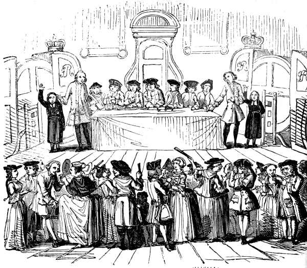 The guardians of the law did not go to sleep, as we see by the following lottery for Twelfth Cakes, when, on December 26, 1860, Louis Dethier, a Frenchman, appeared before Mr. Henry, at Bow Street, to answer a summons under the Act (42 Geo. III. c. 119) for keeping an [Pg 332] office at the Hanover Square Rooms for the purpose of carrying on a lottery, “under the name, device, and pretence of a distribution of Twelfth Cakes.”