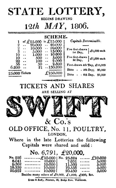 [21] “In the Lottery which drew this time last year, every Ticket was sold before the third day of Drawing, notwithstanding they were as high as £22 before the Drawing began.”