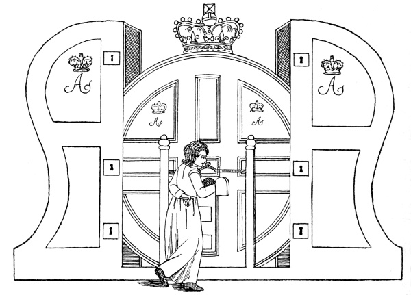 “The Lord Mayor said he was afraid the complainant had deceived herself. He dismissed the application, recommending her to go to the Stamp Office, and apply to the Commissioners, who would do anything, except pay the money, to satisfy her” (Times, November 3, 1826). [Pg 330]