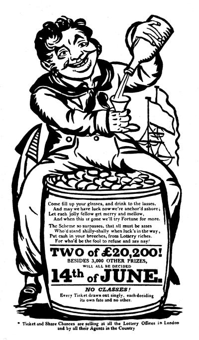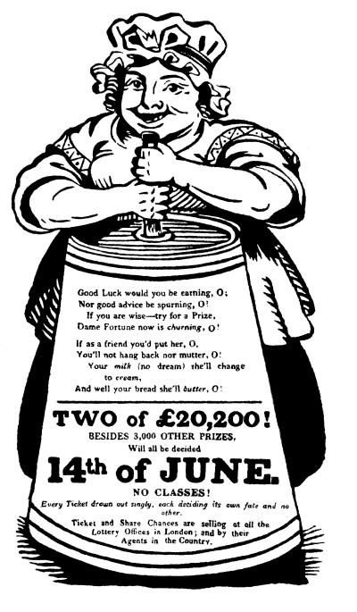 The lottery wheels—Anecdotes connected with the lottery—The Glasgow lotteries—Advertising foreign lotteries—“Art Union” Act—Dethier’s “Twelfth Cake Lottery”—Tontines—Raffling—Pious lotteries—Sweet-stuff lotteries for children— Hamburg lotteries