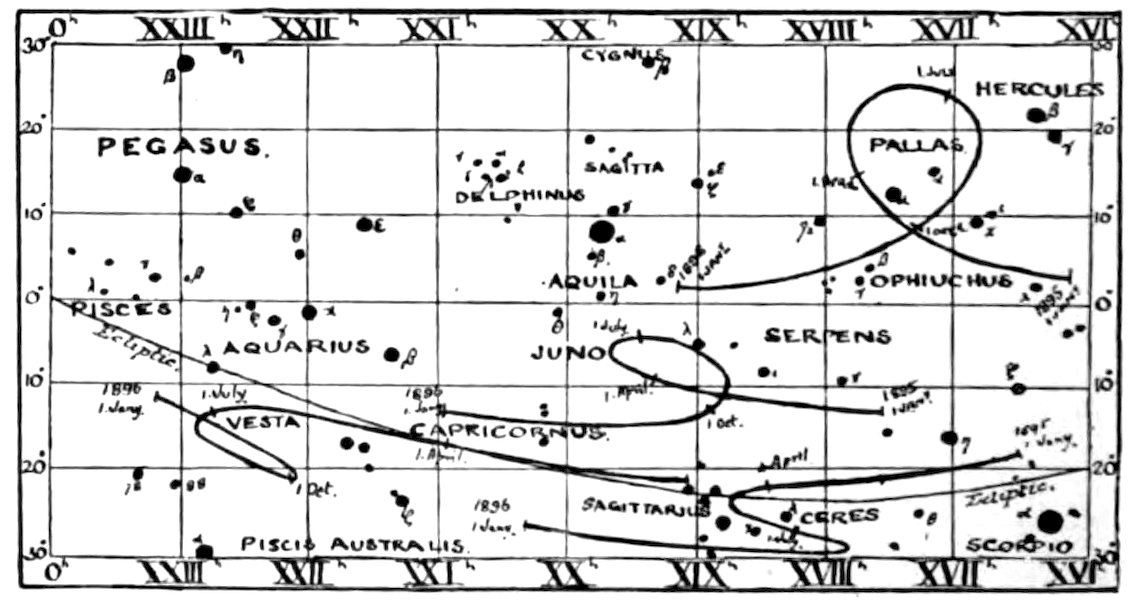 | 26.— | Apparent Paths of Ceres, Pallas, Juno, and Vesta, in 1896 | 104 |