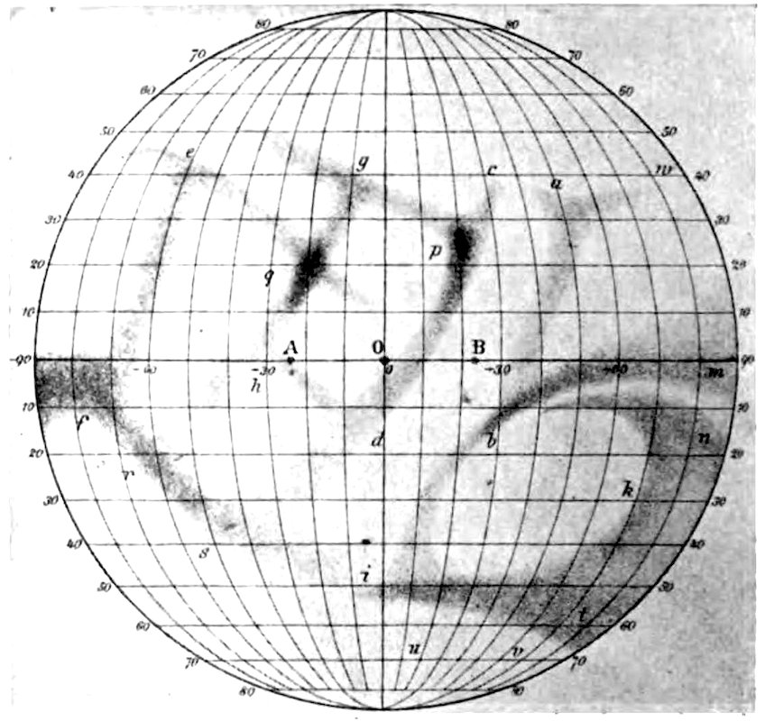 To M. Loewy, Director de l’Observatoire, Paris, for permission to reproduce the photograph of the Moon, which forms the frontispiece of this volume; to Professor Edward S. Holden, Director of the Lick Observatory, for permission to reproduce drawings and photographs of the Observatory at Nice, p. 2; the Thirty-six Inch Reflector of Lick Observatory, p. 40; the Meridian Circle of the Paris Observatory, p. 203; the Spectroscope adapted to the eye end of the Lick Telescope, p. 221; and Jupiter showing the Red Spot, p. 322; to Dr. Isaac Roberts, for permission to reproduce his photograph of the photographic telescope used by him, p. 196; to Messrs. Trichnor & Co., of Berlin, for permission to reproduce two illustrations of Donati’s Comet, pp. 228 and 363; and one of Sun-spots and Magnetic Variations, p. 246—all from Langley’s “New Astronomy”; to Messrs. Witherby & Co., for permission to reproduce the photograph of a Sun-spot by Janssen, p. 243; the photograph of Jupiter, p. 328; the photographs of Swift’s Comet, pp. 374 and 375, Brooks’ Comet, p. 381, and the Milky Way, p. 557, from Knowledge; to Messrs. Taylor & Francis, for the diagram of curves showing the development of Sun-spots, p. 257; to Professor George E. Hale, of Kenwood Observatory, Chicago, for his illustrations of Eruptive Prominences photographed at Kenwood, March 24th, 1896, pp. 264 and 265, reproduced from the Astrophysical Journal; to the Council of the Royal Society, for the illustration of the Eclipsed Sun, p. 267, reproduced from “Philosophical Transactions”; to Professor Barnard, for the photographs of the Corona, reproduced on p. 269; and the ixdrawings of the Transit of Jupiter’s Satellite, on p. 330, reproduced from the Monthly Notices of the Royal Astronomical Society; the Eye of Mars, p. 302; and of Saturn and his Rings, p. 335; to the editor of the Astronomische Nachrichten, for the map of Mercury, by Schiaparelli, reproduced on p. 276; to the editor of Nature, for the drawing of Venus by Mascari, on p. 280; to Messrs. George Philip & Son, for the map of the Moon, given on p. 291, from Fowler’s “Telescopic Astronomy”; to Messrs. Longman, Green & Co., for the Chart of Mars, p. 300, and the diagram of the Apparent Orbit of the Companion of Sirius, p. 439, from Proctor’s “Old and New Astronomy”; to Professor W. W. Payne of Goodsell Observatory, for the use of the drawing of the Oases of Mars, p. 304, from “Popular Astronomy”; and the photograph of Holmes’ Comet, p. 378, from the same work; to Messrs. A. & C. Black, for the illustrations of the Great Comet of September, 1882, p. 361, reproduced from Miss Clerke’s “History of Astronomy”; to Messrs. Crosby, Lockwood & Co., for permission to reproduce the illustration of the Nebula in Andromeda 31 Messier, p. 398, from the frontispiece of Mr. J. E. Gore’s “Visible Universe”; and also for the same authority, regarding the diagrams, showing the Stars visible in the Northern Hemisphere, p. 401; the Stars visible in the Southern Hemisphere, p. 403; the drawing showing the position of the Solar Apex, according to different computers, p. 429; and the photographs of the Spiral Nebula 51 Messier, p. 533; and the Milky Way in Sagittarius, p. 555, all from the same work; to Messrs. A. D. Innes & Co., for the use of the diagram, Apparent Orbit of Zeta Herculis, p. 436; Triple Stars, p. 451; and for permission to reproduce the photographs, 37 Messier, p. 505; the star cluster, Omega Centauri, p. 512; the Nebulæ of Orion, p. 521; and the Magellanic Clouds, p. 537, from “The Worlds of Space”; and to Messrs. Sutton & Co., for the use of the diagram xof the Apparent Orbit of 70 Ophiuchi, p. 443; the photographs of the Double Cluster of Perseus, p. 503; the Star Cluster in Gemini, p. 504; the Star Cluster in Hercules, p. 507; and the drawing of the Trifid Nebula, Sagittarius, p. 525, from “The Scenery of the Heavens”; and the drawing of the Temporary Star of 1572, p. 481, from “Planetary and Stellar Studies,” both published by them.