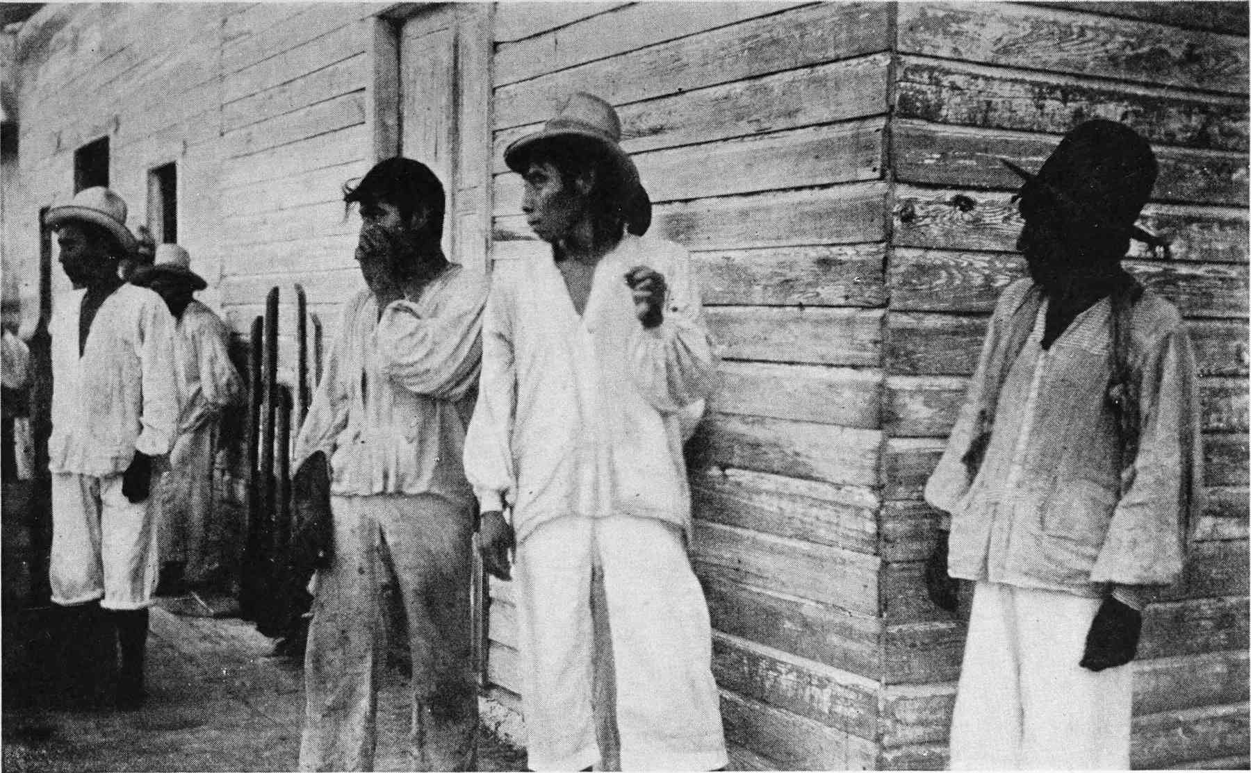 Although the Indios sublevados of Quintana Roo have managed to maintain their independent status their numbers have pitifully diminished. Under President Díaz a vigorous campaign was waged against them for twenty years but the recalcitrant natives allowed the Mexican generals to hold precariously only the town of Santa Cruz and a few lines of communication. Then, as political strife developed in the Mexican capital itself, the garrisons were withdrawn. In 1918, the aboriginal population found a still more deadly enemy in the world epidemic of influenza. Recently American silver has been more successful over this renegade people than Mexican lead. The insistent demand for chewing gum among the children and salesladies of the United States has brought about a benevolent penetration into Quintana Roo of hand mirrors, glass pearls and alcohol flavored with anis seeds.