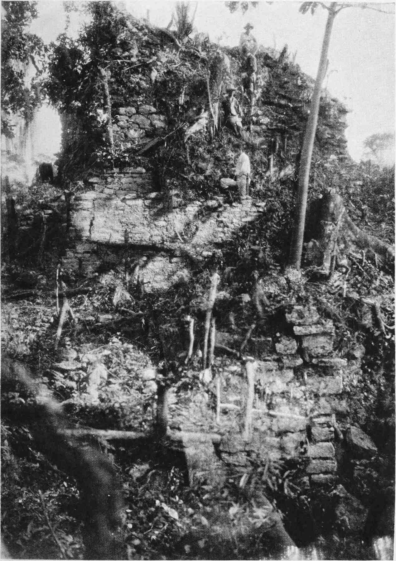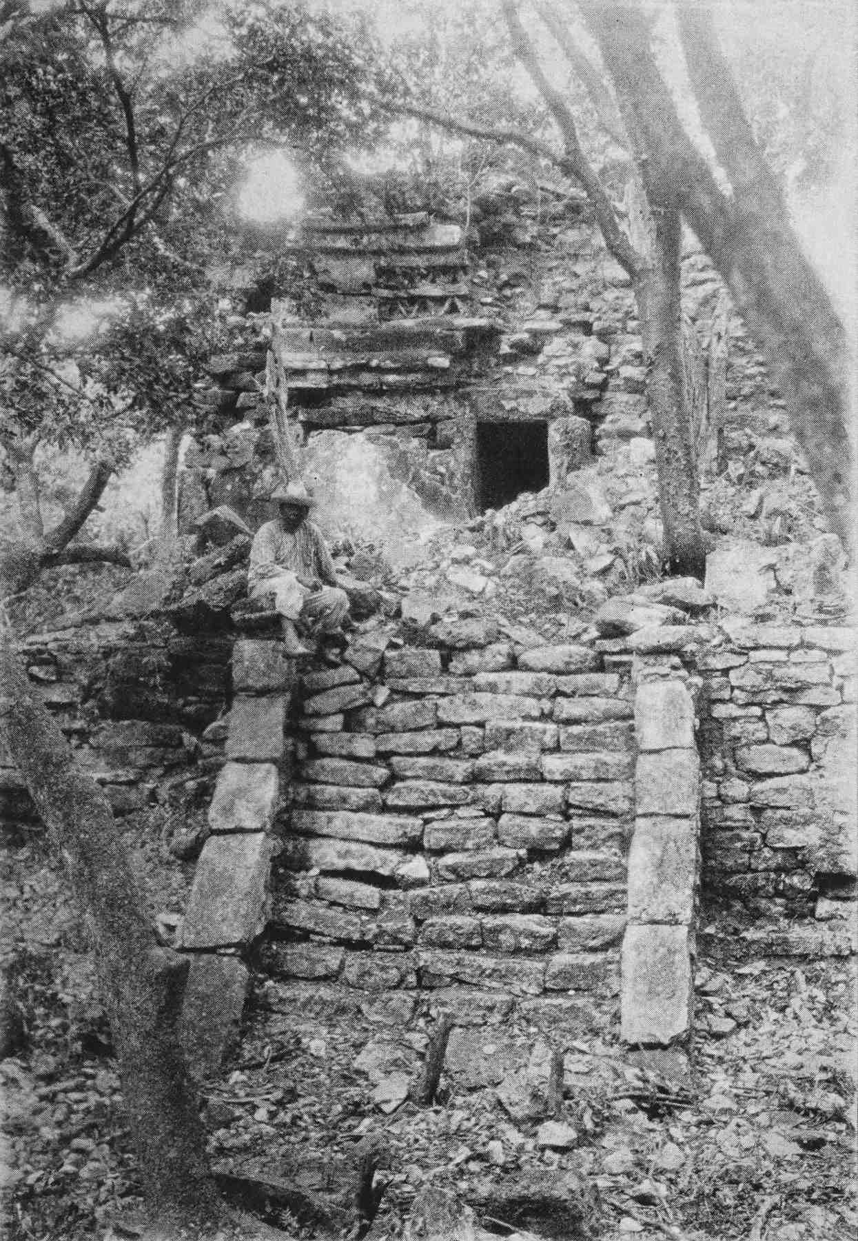 As our expedition skirted shores once eagerly scanned for landing places by lookouts on the war vessels of Grijalva and Montejo, and as we cut our way through jungles where the feet of the Spanish men-at-arms had once trampled the tender growth of the wide Indian cornfields, we were constantly alert to discover remains that would throw light on the question, were the Mayas a warlike nation? Deserted Spanish forts we found aplenty, guarded now by nothing more deadly than stinging ants and the thorns of the thick bush. The testimony of the Maya ruins, which we found in abundance, answered the question with an emphatic negative.