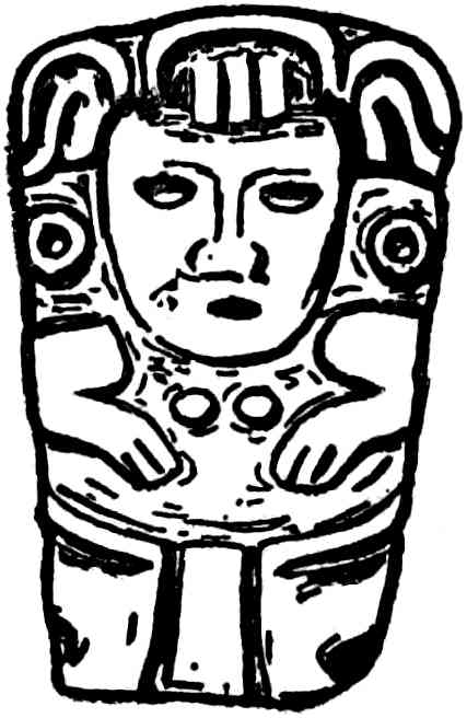 It is true that the horrible rite of human sacrifice obtained some hold among them; but this was as nothing compared with its prevalence among the Aztecs of highland Mexico. Their sculptures, paintings [318] and pictured books are the work of a religious and peacefully inclined people. There are, indeed, a few representations of warriors leading home captives; but the figure of the soldier in Maya art is negligible. That of the priest is ubiquitous. The Maya War God, the “Black Captain,” enjoyed no such importance as did the bloody Huitzilopochtli in the pantheon of the Aztecs.