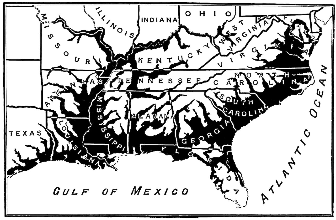 Not only in Louisiana, Mississippi, and South Carolina, as wholes, is there a negro majority among the population, a similar majority exists in nearly all the low-lying portions of the Southern States, from the Chesapeake to Florida and from Florida to the borders of Mexico, and especially in those low-lying districts that are removed from the great towns.[2] The face of the country consists, speaking broadly, of hill-tracts, and of cities, where the whites are in a majority, and of lowlands, where the blacks are numerically supreme; and there are obvious natural reasons at the bottom of this division of the races. Heat is irksome to the Anglo-Saxon and correspondingly grateful to the negro. Trade, mining, and manufactures attract the white man; agriculture and tillage are preferred by the black. In the undrained lowlands the negro constitution defies fevers and other ills that often weaken if they 10do not actually prove fatal to the white man’s health. And so, apart from questions of births and deaths, some parts of the Southern States tend to every year become blacker, while others as steadily become whiter.