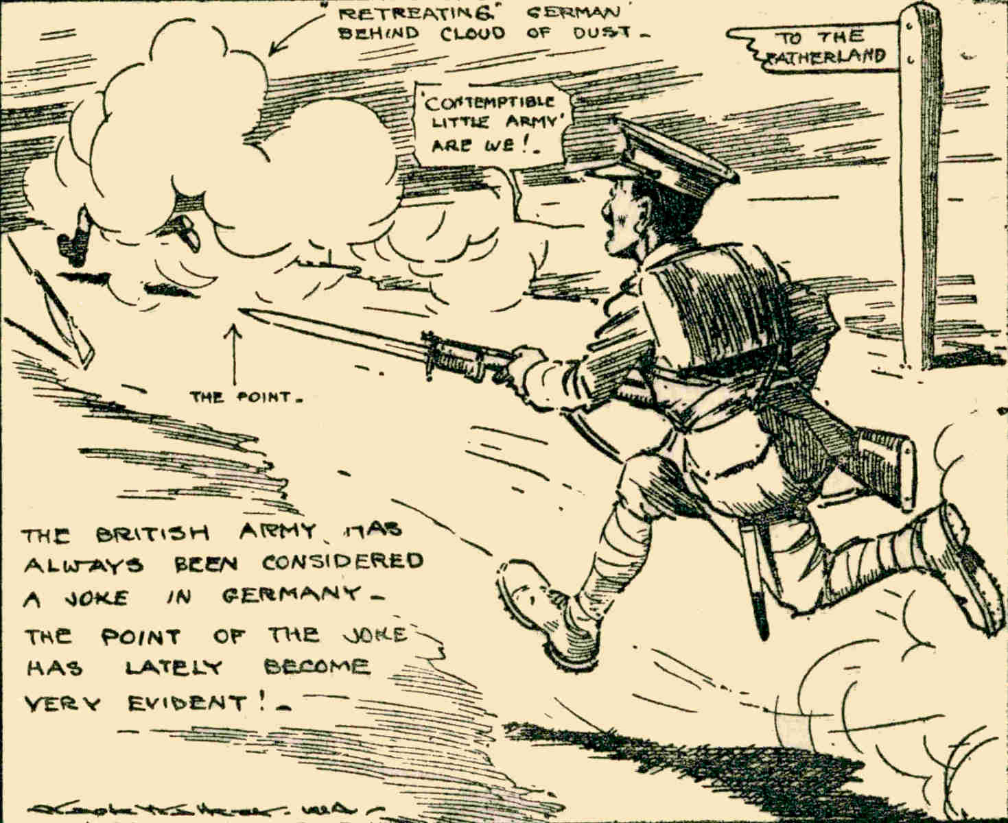 Indignant Teuton: “‘British superiority,’ Bah!—Don’t tell me such things. Why,