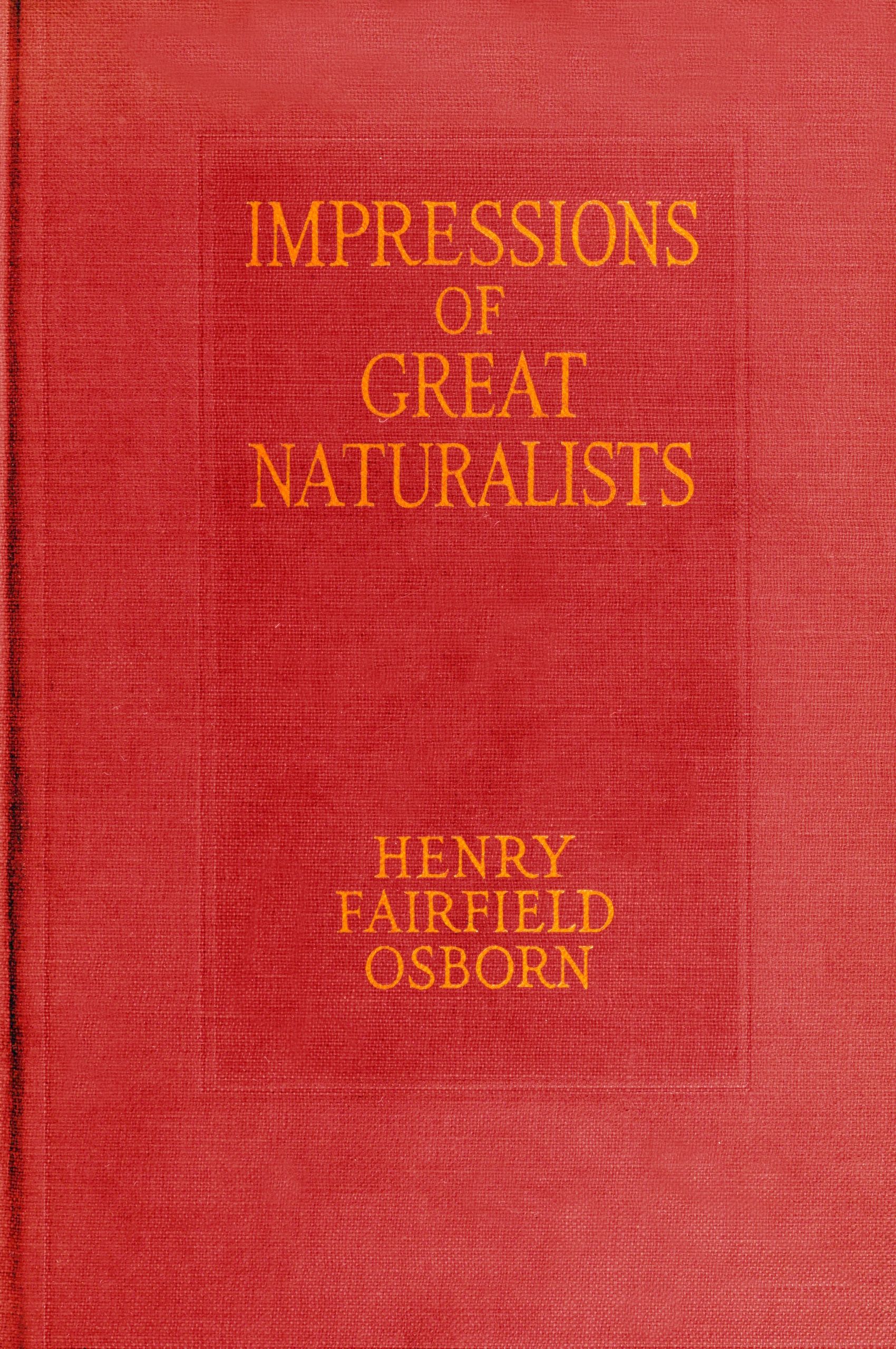 There is no joy like the joy of creative work. To my mind all great men are creative, and among the greatest men are the creative naturalists from Aristotle to Darwin, whose self-effacing lives and enduring works are our most precious possessions. I like a naturalist better than a scientist, because there is less of the ego in him, and in a naturalist like Darwin the ego entirely disappears and through his vision we see Nature with the least human aberration. These “Impressions” may show the young and aspiring naturalists of our day that in the highest creative vision there is the least of self and the most of Nature. In the twelve lives chosen from the fifty-seven men and women of whom I have written,[1] I include Roosevelt, Bryce and Butler because as intrepid explorers and observers they show some of the highest qualities of the naturalist.