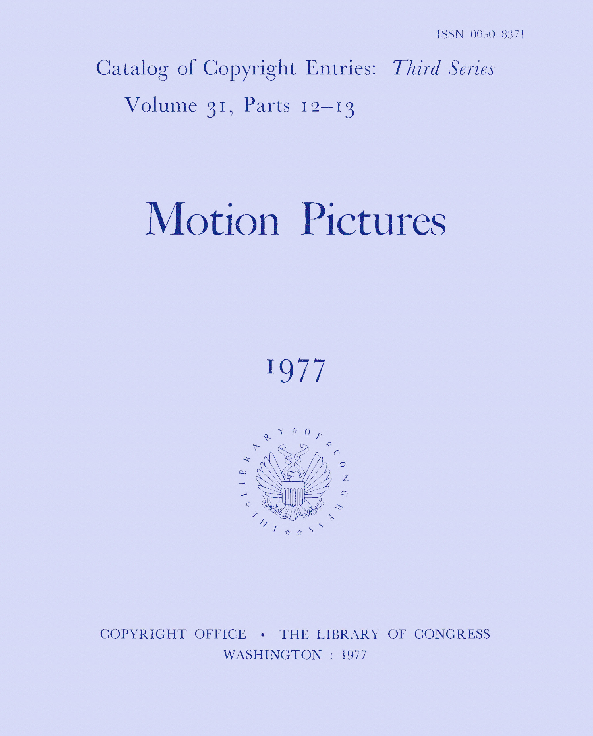 ISSN 0090–8371 Key title: Catalog of copyright entries. Third series. Parts 12–13. Motion pictures.