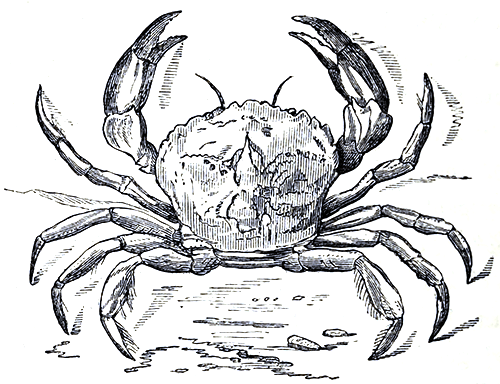A great deal of this esteem, it is to be feared, somewhat resembled the great affection professed by a chief of the Feejee Islands for a very good-looking little midshipman of one of Her Majesty’s ships cruising among those fertile but questionable retreats. “I love him very much,” said the dusky potentate, “because he is so plump, and would make such a delicious roast with palm-top stuffing.” Apicius loved Crab because he was good in many ways. Hear what he says of Crab sausages: “Boil some of these animals, reduce them to a pulp; mix with this some spikenard, garum, pepper, and eggs; give to this the ordinary shape of sausages, place them on a stove or gridiron; and you will by this means obtain a delicate and tempting dish.” He also informs us that a Crab may be served whole, boiled, and accompanied by a seasoning of pepper, cummin, and rue, which the cook skilfully mixes with garum, honey, oil, and vinegar. Later on in history we find our friend Cancer depicted in heraldic devices, and among the armorial bearings of many influential families. So we see that his lineage is an ancient one. The family to which he belongs is extremely [Pg 4]numerous, and it is with the peculiarities of some of its members that we shall now have to deal.