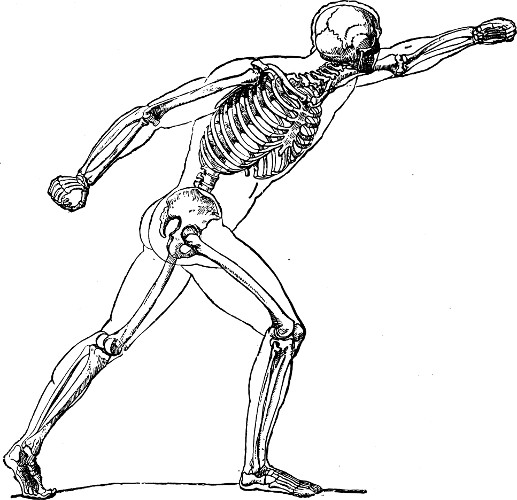 This summary of anatomy is intended for those artists who, having commenced their special studies, have drawn the human form either from the antique or from the living model—who, in a word, have already what may be termed a general idea of forms, attitudes, and movements. It is intended to furnish them with a scientific notion of those forms,[viii] attitudes, and movements. Thus it is far less a description of the forms of a particular region than the anatomical explanation of those forms, and of their modifications in a state of repose or movement, that we have in view. That is why, instead of proceeding from the surface to the deeper organs and to the skeleton, we take the latter as the starting-point of our studies. In this way alone can we determine the laws which govern the movements of the adjacent segments of the limbs upon each other, and the movements of the limbs with regard to the trunk, as also the reciprocal action of these segments towards each other and in relation to the whole body.