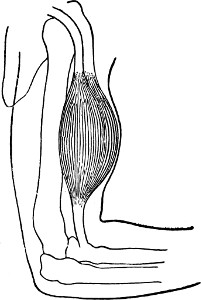 On the other hand, as impossible combinations discordant both to sentiment and muscular mechanism, we may, for example, consider the simultaneous contraction of the frontalis and the superior orbital portion of the orbicularis muscles of the eyelids. The first muscle expresses attention, the second reflection, or two opposite states of the mind, which cannot at the same time be open to external phenomena, and meditating on internal analyses. Again, the first muscle raises, the second depresses the eyebrow, which cannot be at the same time drawn in two opposite directions; just as, to take an example from the muscles of the limbs, the forearm cannot be at the same time flexed by the action of the biceps and extended by that of the triceps.