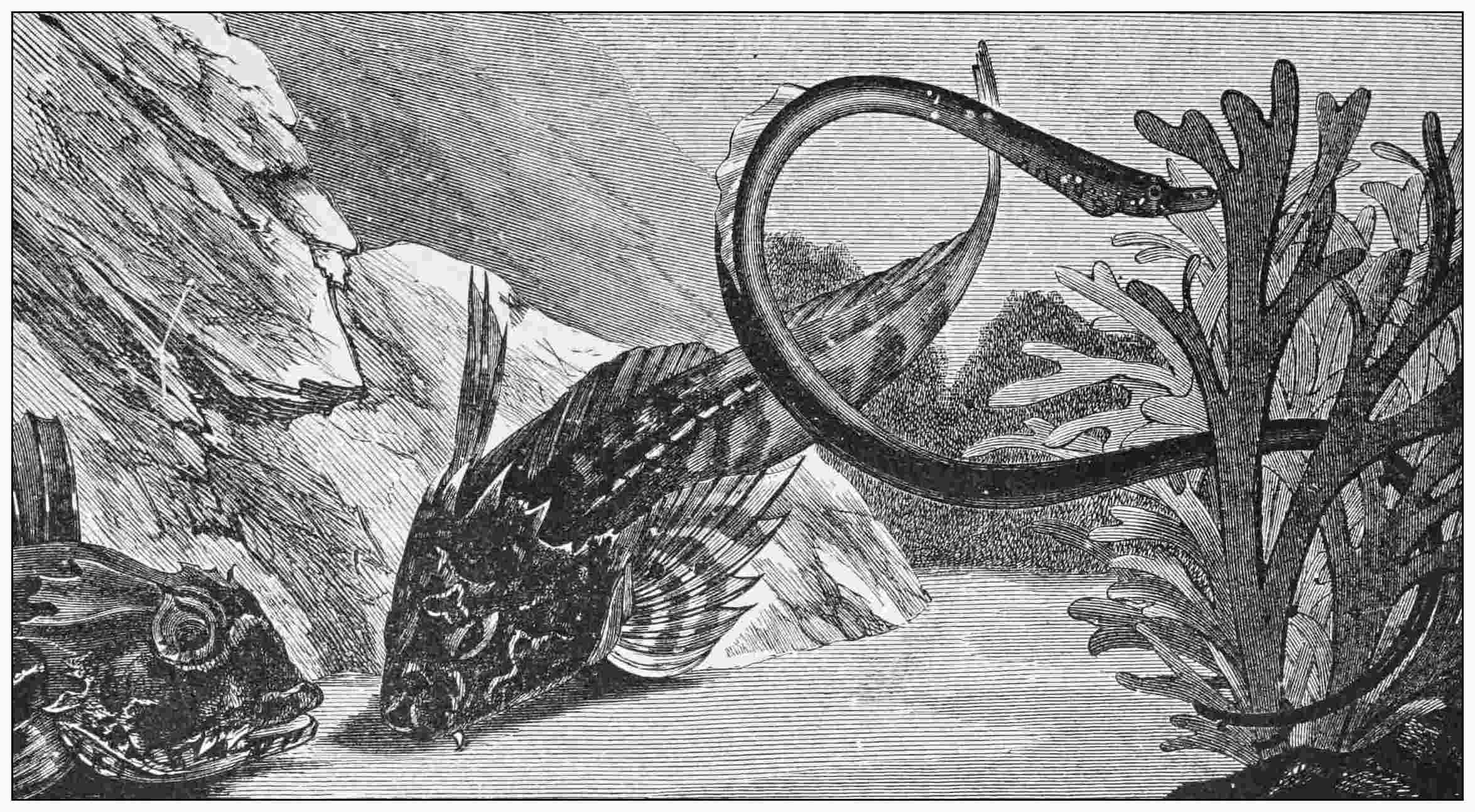 Another green weed that should be mentioned is the Enteromorpha compressa, of the same texture as the Sea Lettuce (Ulva), already mentioned, but forming a narrow tube of rugged shape, that is ordinarily collapsed, but sometimes inflated with oxygen gas. It is represented in the illustration of the Sand Launce on page 275. A tuft growing on a stone or limpet-shell, is a valuable addition to the aquarium, for it will continue to grow, and many of the animal inhabitants will find their food in it. Crustaceans, fishes, and mollusks are all fond of it.